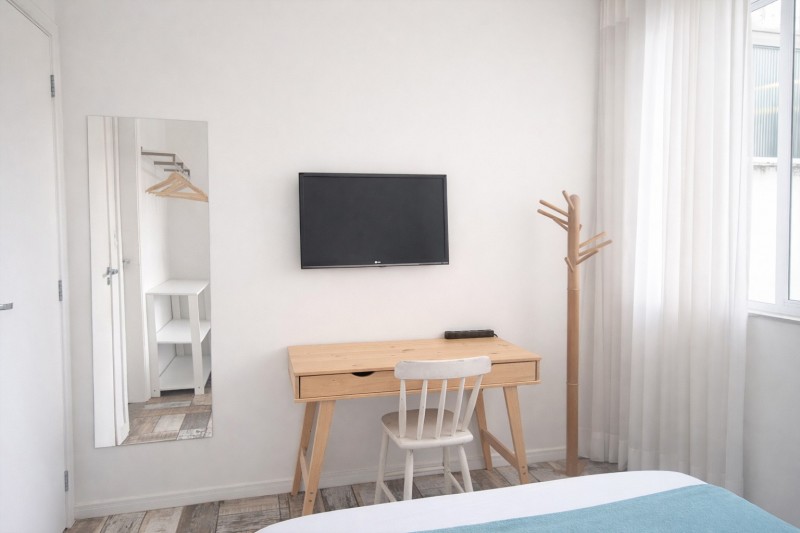 - Área de convívio compartilhado, incluindo cozinha, sala de jantar/estar e um lavabo.